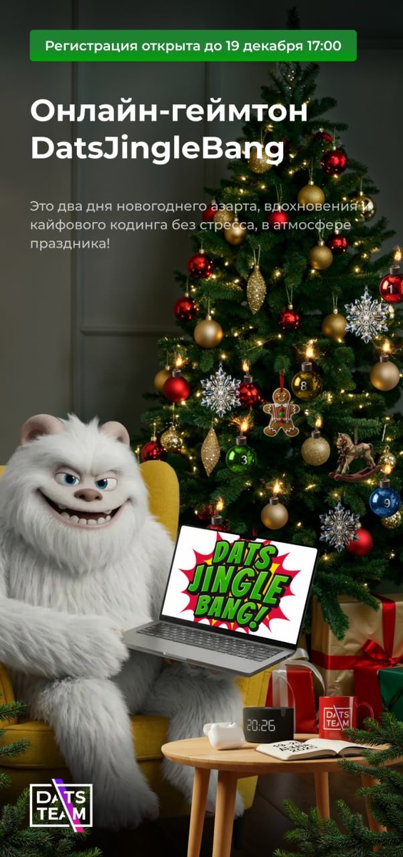 ππ ΠΠΎΠ²ΠΎΠ³ΠΎΠ΄Π½ΠΈΠΉ Π³Π΅ΠΉΠΌΡΠΎΠ½ DatsJingleBang ΠΎΡ DatsTeam 19-20 Π΄Π΅ΠΊΠ°Π±ΡΡ! ΠΠΎΠΉΠΌΠ°ΠΉ Π½ΠΎΠ²ΠΎΠ³ΠΎΠ΄Π½ΠΈΠΉ ΡΠΈΡΠΌ, ΡΠΎΠ±Π΅ΡΠΈ ΠΊΠΎΠΌΠ°Π½Π΄Ρ ΠΈ ΠΏΠΎΠ³ΡΡΠΆΠ°ΠΉΡΡ Π² ΡΠ°ΠΌΡΠΉ Π±ΠΎΠΌΠ±ΠΈΡΠ΅ΡΠΊΠΈΠΉ Π³Π΅ΠΉΠΌΡΠΎΠ½ Π³ΠΎΠ΄Π°! DatsJingleBang β ΡΡΠΎ Π΄Π²Π° Π΄Π½Ρ Π½ΠΎΠ²ΠΎΠ³ΠΎΠ΄Π½Π΅Π³ΠΎ Π°Π·Π°ΡΡΠ°, Π²Π΄ΠΎΡ