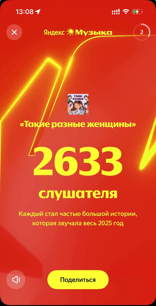 ЯндексМузыка подготовила итоги 2025! Половину года подкаст был на стопе, т.е. выпуски не выходили, но, тем не менее, подкаст активно слушают, чему я очень рада! Возможно, что найду силы, желание и средства для продолжения сезонов 💖