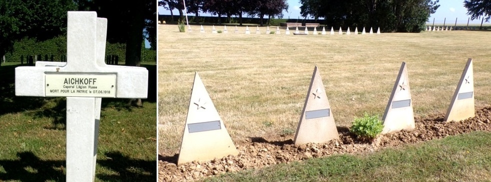 Во Франции на сегодняшний день нам известно 299 мест захоронений солдат Русской Императорской армии, погибших в 1-ю мировую и 276 мест захоронений солдат Красной Армии, погибших во 2-й. Всего 564. Два советских некрополя мы нашли в этом году, один буквально неделю назад, что показывает насколько еще известно не все. При этом нет ни одного воинского некрополя в российской юрисдикции, и не предвидится. Никого не смущает проводить пышные церемонии в навеки недостроенном советском некрополе Нуайе-Сен-Мартен. Некрополь Русского Экспедиционного Корпуса Сент-Илер-ле-Гран, он же Мурмелон находится в юрисдикции французского военного ведомства, над ним спущен (!) российский флаг и во Всемирное наследие Юнеско он занесен французской стороной. Могилы наших солдат могут находиться в юрисдикции французской армии, Тогда они оформлены таким крестом или такой пирамидкой (2-я мв). В юрисдикции неправительственной ассоциации Сувенир Франсез Или в юрисдикции местных органов власти. В юрисдикции британ