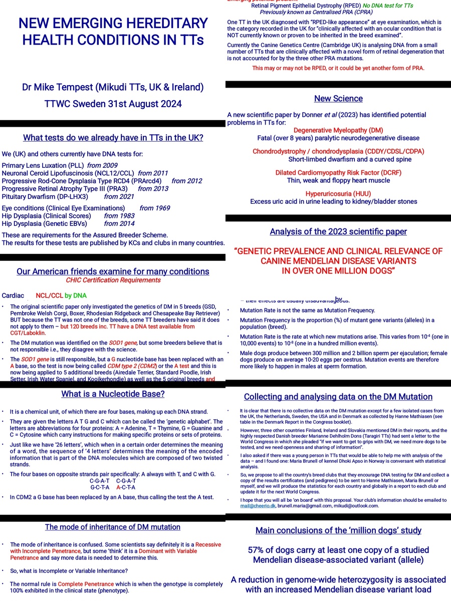Статья Майка Темпеста «Новые возникающие наследственные проблемы со здоровьем у TT» была представлена 9 мая 2024 года для публикации в брошюре Всемирного конгресса.