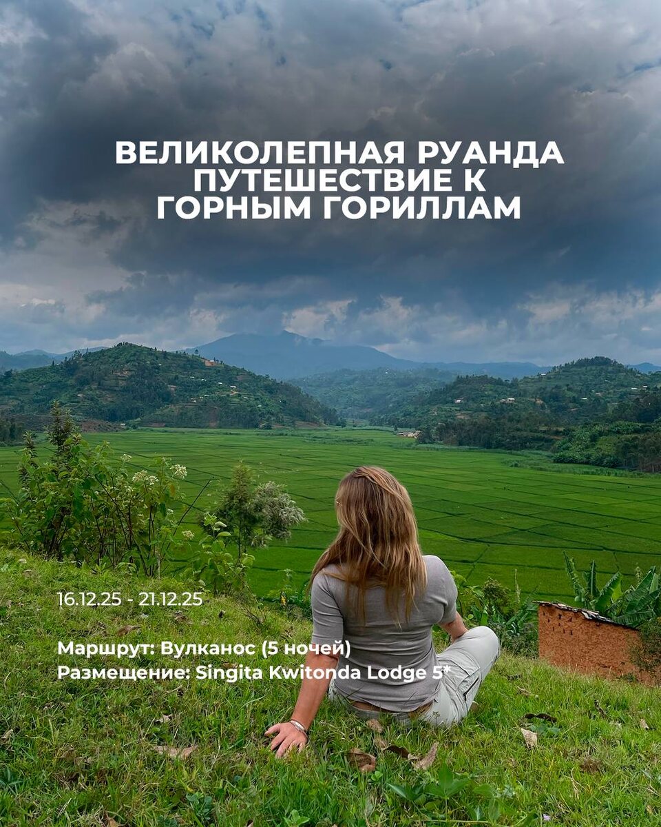 Великолепная Руанда — путешествие к горным гориллам 🦍 16.12-21.12 Уникальный маршрут в национальный парк Вулканос с проживанием в Singita Kwitonda Lodge 5* и треккингом к золотым обезьянам и горным гориллам. Полное сопровождение, VIP-ассистанс и все необходимые пермиты включены. Цена за тур: 39 065 USD 💰 за 2 человек Бронируйте в директ @ekaterinaexpert #руанда #горныегориллы #африка2025 #путешествия #премиальноепутешествие #ekaterinaexpert