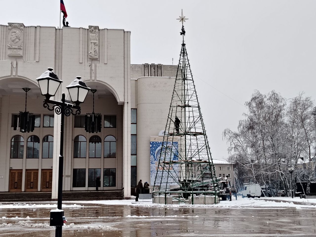 В Курске продолжается установка главной городской новогодней ёлки на Театральной площади