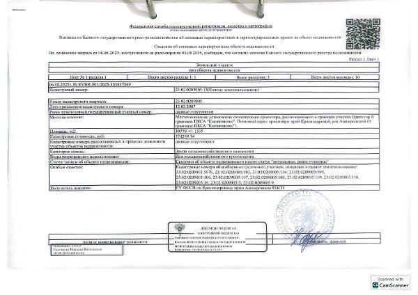 Название: Д-к: Новиченко И.И. 1/48 доля в праве общей долевой собственности на земельный участок (для сельскохозяйственного производства), общая площадь 30778 кв.м., кадастровый номер 23:02:0209005:13. Адрес: Краснодарский край, Апшеронский район, в границах ПКСА «Калининское». Граница земельного участка не установлена в соответствии с требованиями земельного законодательства. Начальная цена 54 568,30 руб., задаток 8 186 руб., шаг аукциона 546 руб., ув. 1423 Канал: Госземля Краснодарский край Область: - Район: - Населенный пункт: - Локация: Смотреть на карте ВРИ: Обеспечение сельскохозяйственного производства Кадастровый номер: 23:02:0209005:13 Кадастровая стоимость: - Вид сделки: Продажа Площадь: 30778 м² Начальная цена: 54568.00 руб. Дата завершения: 12.01.2026 Подробнее: ГИС ТОРГИ #госземля #земляотгосударства #земля #земельныйучасток #земельныеторги #торги #аукцион #продажаземли #продажа #краснодарскийкрай