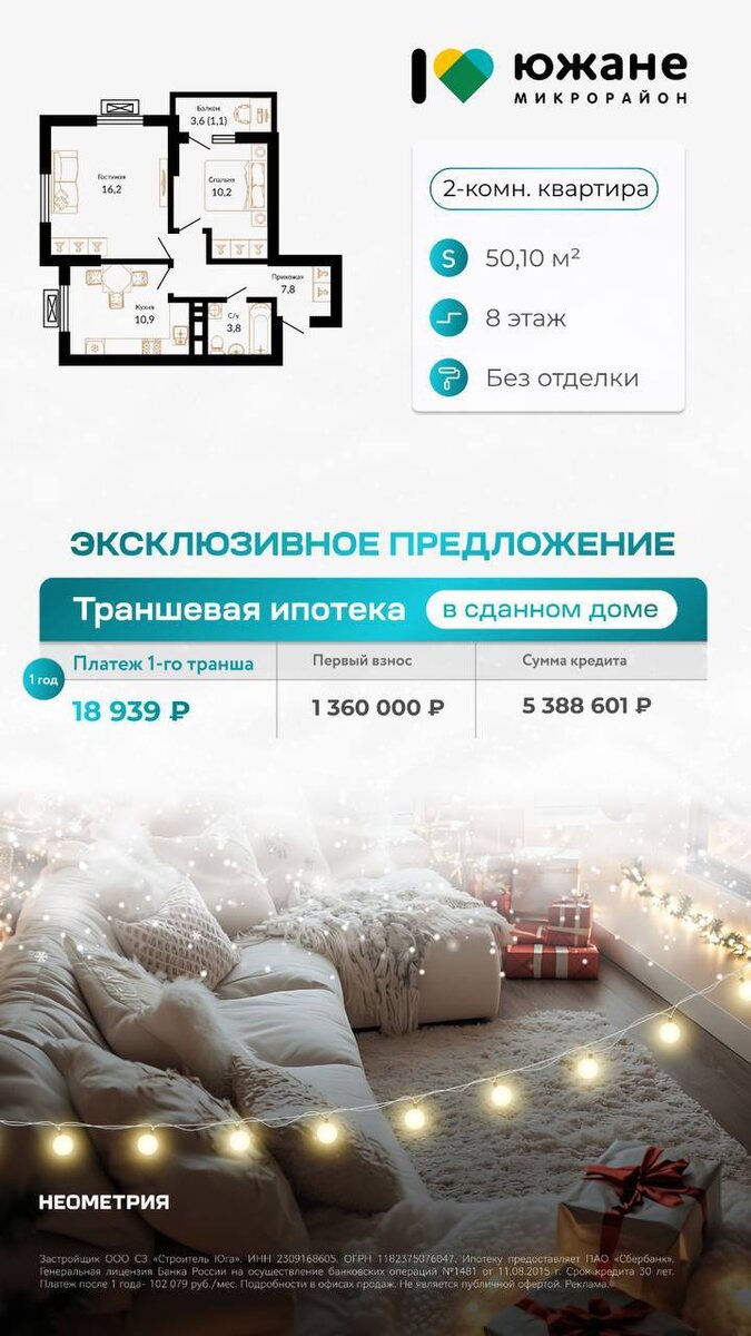 Траншевая ипотека - это инструмент, который позволяет снизить ежемесячные платежи в 2 раза! ЛОТ ДНЯ | МКР-Н ЮЖАНЕ 🏡50,1м2 ПВ: 1 360 000 рублей Платеж: 18 939 рублей 🏡80,78м2 ПВ: 1 860 000 рублей Платеж: 18 939 рублей Мкр Южане: ✅Эргономичные планировки с максимальной пользой от каждого метра. ✅Гарантия безопасности, спокойствия и приватности на закрытой территории. ✅Семейный квартал с уникальной идентичностью и развитой средой. По всем вопросам приобретения лучшей квартиры в Краснодаре, обращайтесь в лс @agentdoveriya ✈️ *Дополнительные скидки для участников СВО