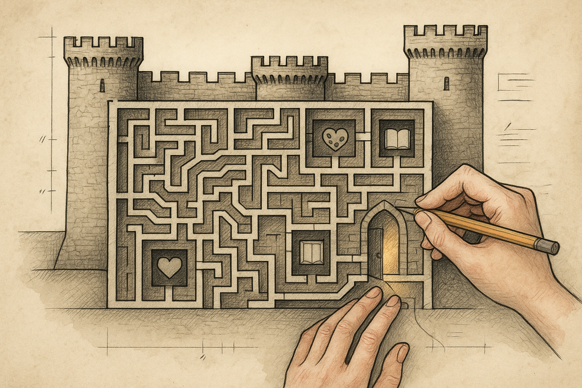 Сегодня мы не будем учиться «слышать себя». Мы проведём архитектурный аудит внутренней цитадели. Наша задача — не снести стены. Наша задача — найти в их чертежах потайные ходы в те помещения, куда вы давно не заглядывали. Туда, где, возможно, сложены неразобранные ящики с вашими истинными желаниями.