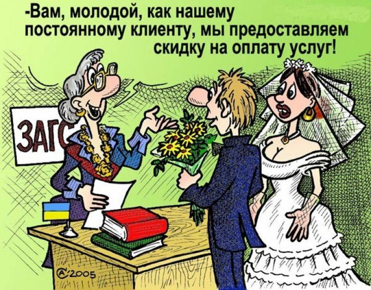 А кто мы такие, чтобы пройти мимо и не показать вам карикатуры на тему свадебного переполоха, женихов и невест? Мы с командой прошерстили интернет и собрали для вас самые интересные карикатуры про женитьбу от разных авторов.