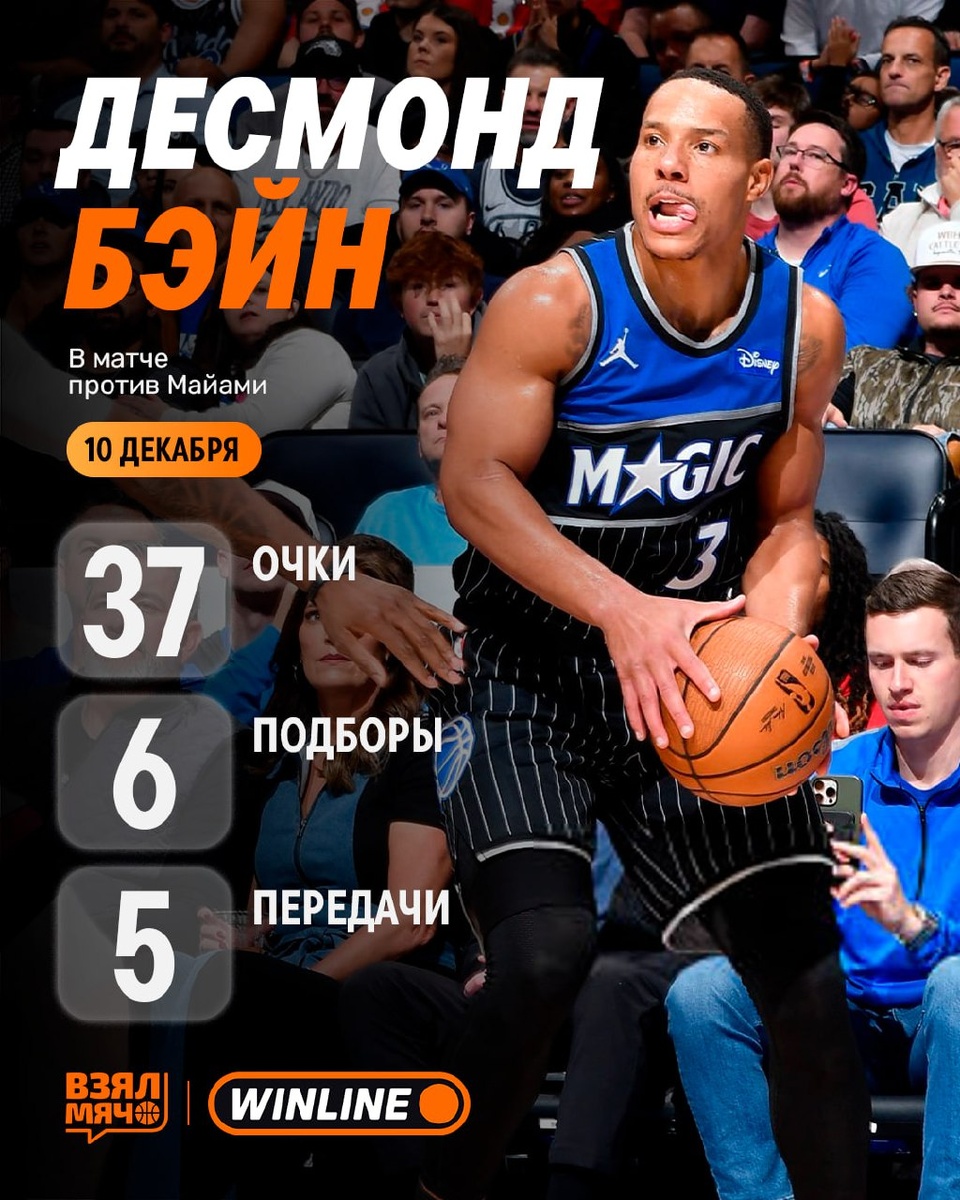 🔥 Десмонд Бэйн сделал разницу «Орландо» летел «Майами» 16 очков уже в первой четверти, но защитник смог перевернуть игру, став ключом к тяжёлой победе. Он набрал 37 очков, 6 подборов, 5 передач, а также 1 перехват за 38 минут на паркете. Бэйн стал первым игроком «Мэджик» со времён Трэйси Макгрэйди, кто за 6 матчей подряд минимум 3 раза набирал 37+ очков. 🏀 ПОДПИШИСЬ — ЗДЕСЬ ЖИВЁТ БАСКЕТБОЛ!