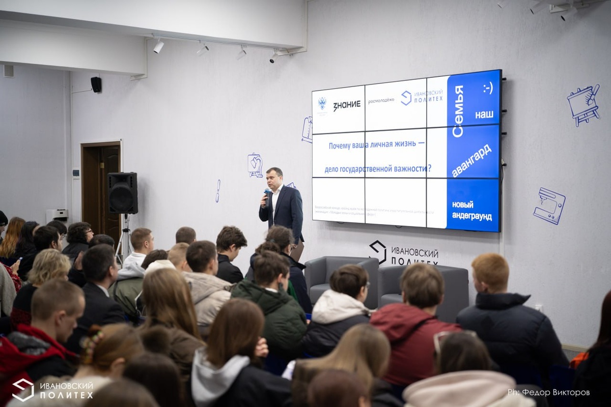 Учиться и растить детей проще, чем кажется Создадите ли вы семью? Если нет, к чему это приведет? С этих вопросов началась открытая лекция проректора по образовательной деятельности и воспитательной работе Алексея Матрохина 9 декабря. На встрече со студентами лидер нашей команды по молодежной политике постарался в диалоге с аудиторией выяснить, что движет молодым поколением: ложные нарративы в массовой культуре - «Живи сейчас!», «Слови больше лайков!», «Будь успешным!», «Дети – обуза!» либо страх и эгоизм, когда никому ничего не должен? Алексей Матрохин напомнил студентам о мерах государственной поддержки, правах и льготах для студенческих семей, особо отметив те, что предоставляет университет. 🔵отдельные, только что отремонтированные комнаты в общежитии №2 🔵комната матери и ребенка в самом вузе 🔵материальная помощь каждый семестр 🔵индивидуальный график обучения 👉Подробнее читайте на нашем сайте Лекция прошла в рамках Всероссийского конкурса команд вузов по молодежной политик
