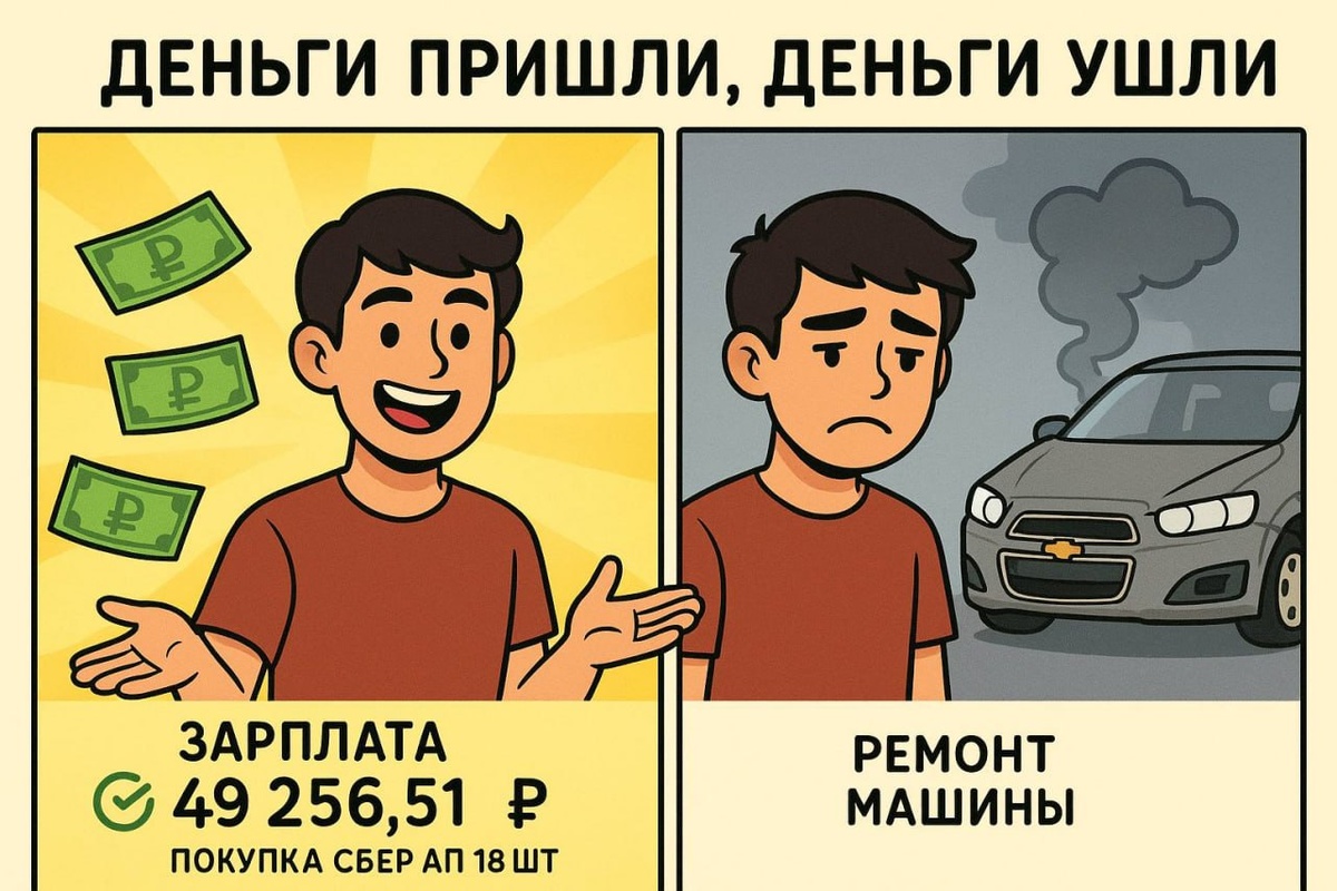 ⚡️ Деньги пришли, деньги ушли 🆕 Сегодня 10-е число, выдалась для меня довольно специфичным. Начавшийся хорошо день постепенно скатывался в бездну, расскажу по порядку. 🚀 Итак, утром пришло заветное сообщение о поступлении заработной платы - в этот раз вышла приятная сумма в 49 256,41 рублей. Раскидав деньги по конвертам, я успел отложить на ИИС 5 500 рублей и отправился по делам. 👎 И тут как не возьмись, возникает проблема с машиной, пришлось срочно везти её в сервис, и соответственно закладывать большую (пока неизвестно) сумму денег. Очень не кстати, учитывая что на носу Новый Год, нужно покупать подарки, а тут такой сюрприз от железного друга + 13-ю зарплату к сожалению не платят. ✉️ Ну что сделано, то сделано. Не знаю получится ли завершить все свои планы к Новому Году, каждый день как новый день. А на сумму пополнений я купил 18 шт 🏦 Сбера АП, сегодня почти не следил за фондовым рынком, чтобы выбирать какие-то активы, взял проверенное временем (тем более надо выровнять с об