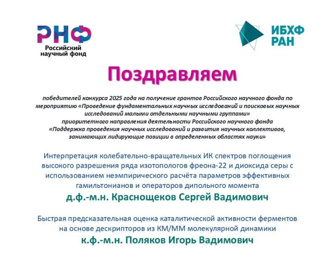 #сотрудникам #гранты #победители #поздравляем #РНФ #ИБХФ #ИБХФРАН #лицаИБХФ