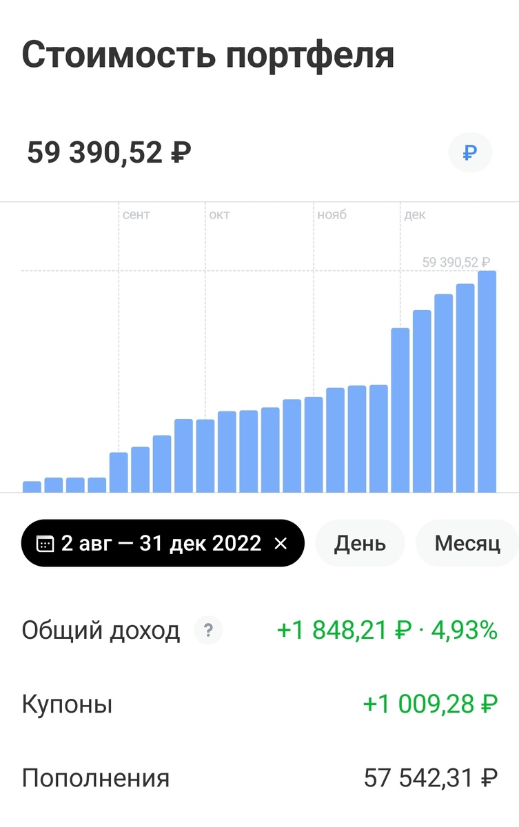 Такой рост мне нравится, деньги работают на меня, и хочется, чтобы в ближайшем будущем сумма полученных купонов и дивидендов превысила сумму, которую вношу я сама.