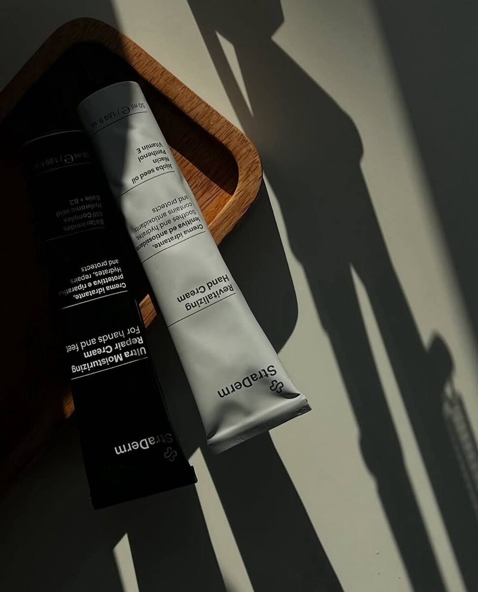 Как выбрать свой идеальный крем от Straderm? ❤️ Кожа рук первой реагирует на холод, сухой воздух и ритм города. Чтобы сохранить её мягкость и красоту, важно найти средство, которое спасёт от неблагоприятных условий и станет вашим личным must-have. 🤍Revitalizing Cream Крем с лёгкой текстурой, который не только питает и увлажняет, но и обладает выраженным anti-age эффектом. Средство стимулирует синтез коллагена и эластина, повышая упругость и эластичность кожи. Содержит пантенол, ниацинамид и комплекс УФ-фильтров, которые помогают предотвратить появление пигментных пятен. ▫️Кому подойдёт: для нормальной или слегка сухой кожи, особенно, если есть склонность к пигментации. Идеален в тех случаях, когда нужно, чтобы крем мгновенно увлажнил кожу и быстро впитался, не оставляя жирности, липкости или ощущения плёнки. 🖤Ultra Moisturizing Repair Cream Интенсивный увлажняющий крем и настоящее SOS-средство для глубокого восстановления кожи. Комплекс церамидов, ниацинамида, пантенола, витамино