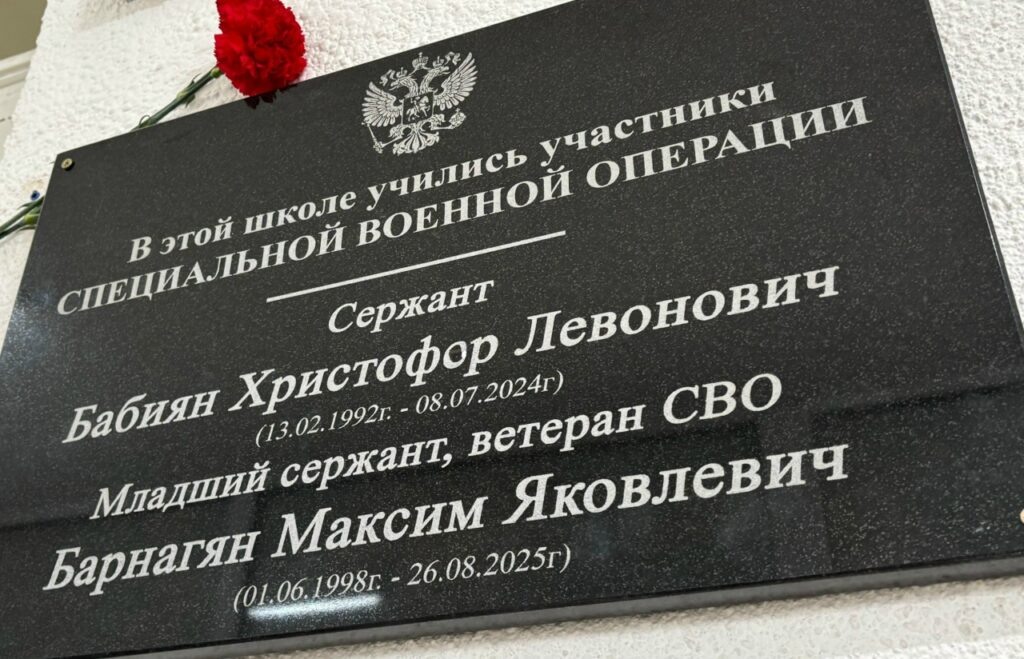Памятное мероприятие, посвящённое открытию мемориальной доски участникам СВО, выпускникам Ленинаванской школы, состоялось в День героев Отечества. Бабиян Христофор и Барнагян Максим навсегда вписали свои имена в историю родной школы. На торжественном открытии присутствовали почетные гости: начальник Отдела образования Администрации Мясниковского района А.А. Толохян, глава Администрации Краснокрымского сельского поселения Л.А. Черкашин, заместитель начальника Отдела образования Администрации Мясниковского района Т.Д. Читахян, семьи героев, педагоги, классные руководили и одноклассники. Прозвучали искренние слова глубокой благодарности нашим землякам – защитникам Родины от главы Краснокрымского сельского поселения Л.А. Черкашина, директора школы И.С. Григорян, классных руководителей Л.В. Почикян и А.М. Харагезян. Ответное слово со слезами на глазах взял дедушка Христофора Бабияна и выразил слова благодарности родной школе героя. Участники мероприятия почтили минутой молчания славных сыно
