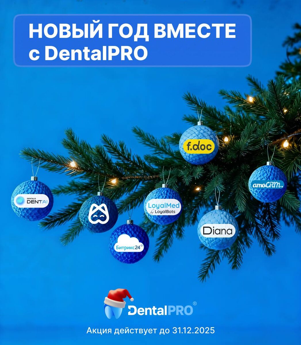 Отпразднуйте Новый год вместе с МИС DentalPRO ❄️ Только до 31 декабря действует праздничная акция: при покупке любой интеграции сроком на 12 месяцев — вы получаете ценный новогодний подарок! Что можно найти под елкой: ⚪ +2 месяца ИИ DIANA ⚪ +2 месяца Dent AI ⚪ +2 месяца на интеграцию с amoCRM ⚪ +2 месяца на интеграцию с Bitrix24 и аудит бизнес-процессов ⚪ +2 месяца LoyalMed ⚪ Скидки на Diagnocat до 32%* ⚪ Сохранение стоимости продления F.Doc на следующий год Пусть Новый год принесёт клинике больше возможностей, автоматизации и роста! 🥂 Всех с наступающим Новым Годом! 🎄