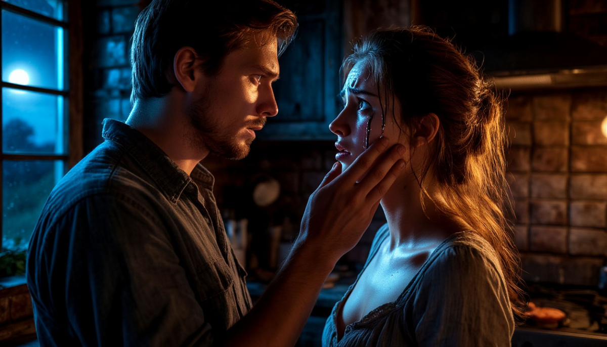 Я поднял руку, коснулся её щеки, смахивая след слезы. Кожа под пальцами была горячей, живой. Она вздрогнула, но не отстранилась. Её дыхание участилось. Моё — тоже. Весь мир сузился до этого метра тёмной кухни, до её запаха — краски, дерева и слёз, до невыносимого напряжения, которое висело между нами неделями и вот-вот должно было разрядиться.