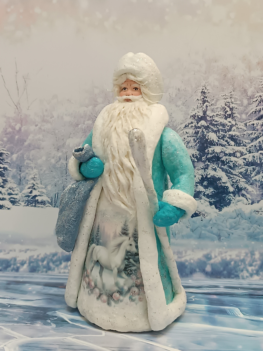 Бывают образы, которые требуют разнообразных деталей, своих изюминок, новшеств... А вот Дед Мороз хорош тем, что при нем всегда неизменные атрибуты - мешок с подарками, волшебный посох и, конечно же, снежная борода! И если с мешком и посохом могут быть вариации, например, какая-то игрушка без мешка, а какая-то без посоха, то уже без бороды Дед Мороз не бывает никогда))). Зимний волшебник весь соткан из искристого снега и сугробов, следовательно, его борода - это продолжение скопления снежинок, развевающегося на ветру. Хочется, чтобы эти моменты - снеговая пышность, движение, развевающиеся пряди - максимально отражались при воплощении игрушки. Мои первые Деды Морозы были с пышными бородами, но все-таки выглядящими плоско после просушки. С опытом я поняла, что удачнее всего выращивать бороду из отдельно сформированных прядей. Да, это более трудоемко и удлиняет процесс по времени, но стоит того! Вот так, послойно, поэтапно я потихоньку наращивала бороду своему Дедушке: Пропитанные клей
