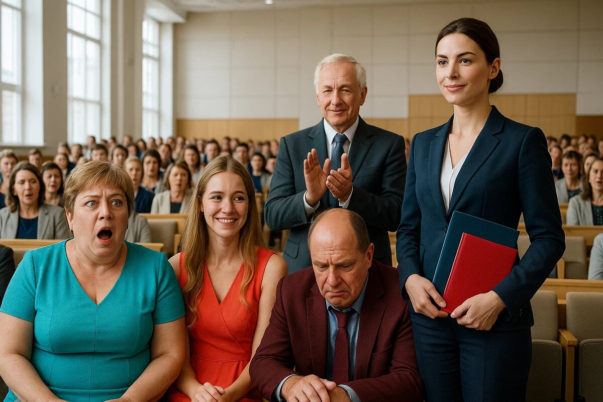 Она посмотрела в зал. Родители сидели бледные, словно их окатили ледяной водой. Вокруг люди оборачивались, перешёптывались, кто-то показывал пальцем. Тамара пыталась улыбаться, но улыбка выходила кривой. Константин смотрел в пол.