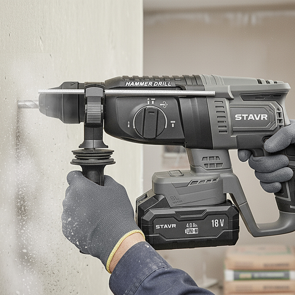 Новый аккумуляторный перфоратор STAVR в двух исполнениях расширяет возможности платформы 18V UNI-M, сохраняя совместимость с системами LXT 18V и 20/21В. Модели рассчитаны на бурение и долбление бетона, кирпича и плотных отделочных материалов. ⚡ SBH 18BL-26-1K развивает энергию удара 2,1 Дж и обеспечивает диаметр бурения в бетоне до 26 мм — практичное решение для монтажных и ремонтных работ. Подробнее о модели: https://stavr-tools.ru/catalog/akkumulyatornyy-instrument/perforator-18vuni-m-sds-plus-26-mm-1kh4-0-ach-bystroe-zu-keys-stavr-sbh-18bl-26-1k/?utm_source=dzen&utm_medium=post&utm_campaign=promo_46001