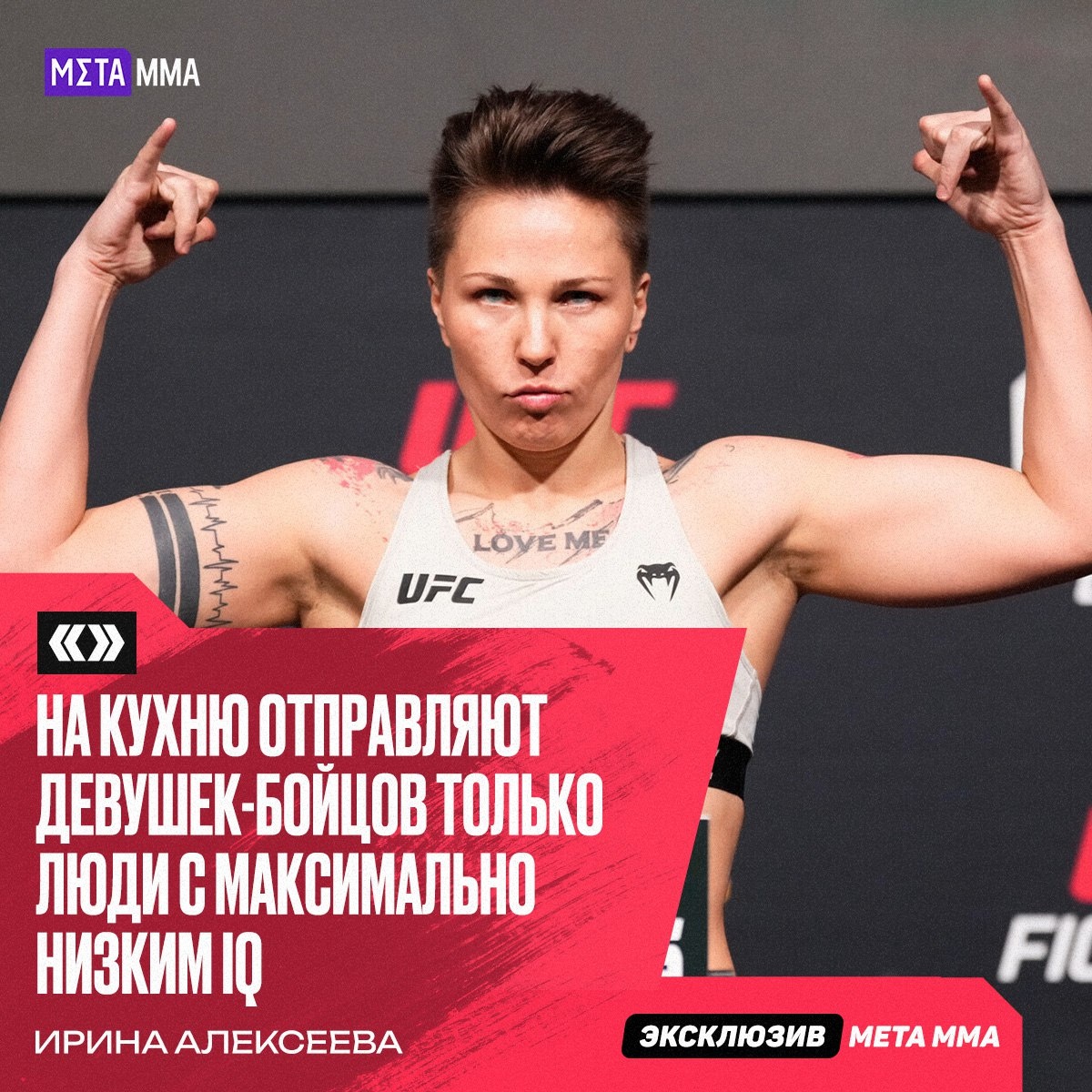 Π½Ρ ΠΌΠΎΠ³ΡΡ ΡΠΎΠ»ΡΠΊΠΎ Π»ΡΠ΄ΠΈ Ρ ΠΌΠ°ΠΊΡΠΈΠΌΠ°Π»ΡΠ½ΠΎ Π½ΠΈΠ·ΠΊΠΈΠΌ IQΒ» Π ΠΎΡΡΠΈΠΉΡΠΊΠΈΠΉ ΡΠΊΡ-Π±ΠΎΠ΅Ρ UFC ΠΡΠΈΠ½Π° ΠΠ»Π΅ΠΊΡΠ΅Π΅Π²Π° Π² ΠΈΠ½ΡΠ΅ΡΠ²ΡΡ MMA.Metaratings.ru ΠΏΡΠΎΠΊΠΎΠΌΠΌΠ΅Π½ΡΠΈΡΠΎΠ²Π°Π»Π° ΡΡΠ΅ΡΠ΅ΠΎΡΠΈΠΏΠ½ΡΠ΅ Π·Π°ΡΠ²Π»Π΅Π½ΠΈΡ ΠΎ ΡΠΎΠΌ, ΡΡΠΎ ΠΆΠ΅Π½ΡΠΈΠ½Π°ΠΌ Π½Π΅ ΠΌΠ΅ΡΡΠΎ Π² ΠΎΠΊΡΠ°Π³ΠΎΠ½Π΅. Π‘ΠΏΠΎΡΡΡΠΌΠ΅Π½ΠΊΠ° Π·Π°ΡΠ²ΠΈΠ»Π°, ΡΡΠΎ ΡΠ°ΠΊΠΈΠ΅ ΠΊΠΎΠΌΠΌΠ΅Π½ΡΠ°ΡΠΈΠΈ ΡΠ°ΡΠ΅ Π²ΡΠ΅Π³ΠΎ ΠΈΡΡ