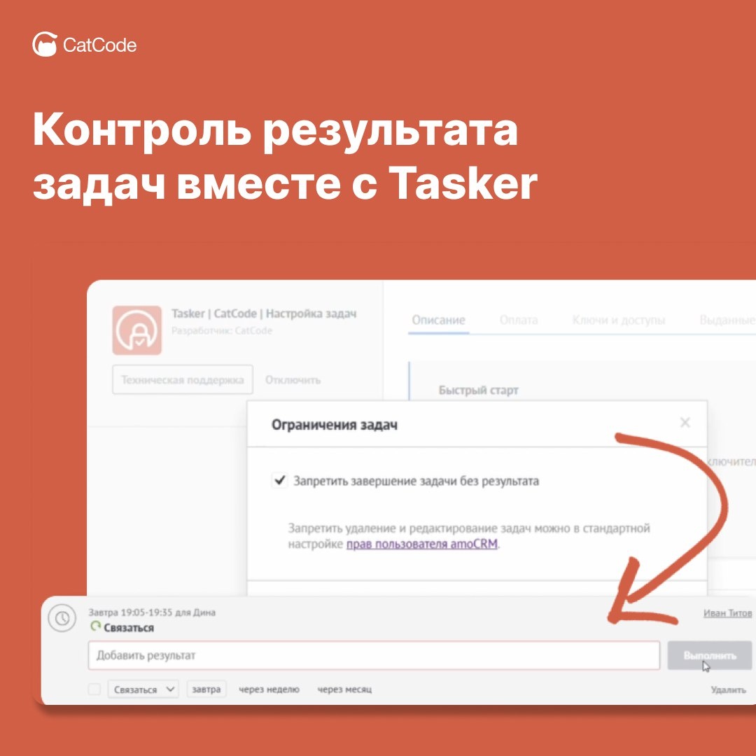 😎 У нас появился новый виджет — Tasker! Теперь задачи в amoCRM закрываются только с результатом. Больше никаких пустых отчётов, недосказанностей и попыток «просто выполнить задачу» без реального действия. Что делает Tasker: — запрещает закрывать задачи без текста результата — помогает руководителю видеть реальную картину по работе менеджеров — повышает качество коммуникации и прозрачность процессов — работает во всех разделах amoCRM: задачи сделки, общие задачи, карточки Tasker уже доступен в amoMarket. Попробуйте его бесплатно — тестовые 2 недели.