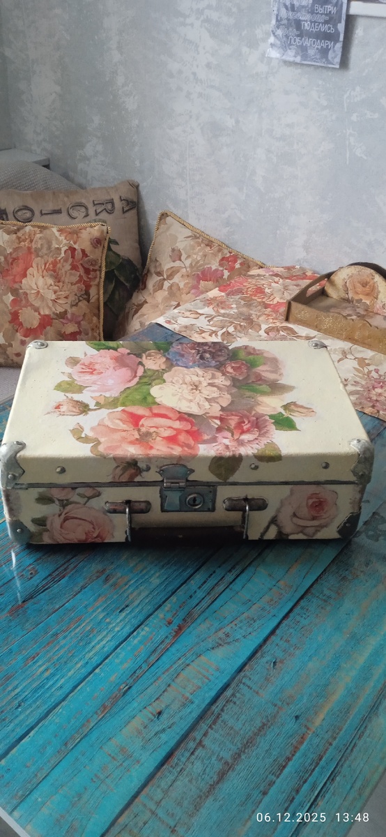 Доброго времени суток мои хорошие. Несколько лет назад, мы с мужем на зимние каникулы поехали в Ярославль. Остановки на пути своего следования не намечали. Решили, как устанем остановимся в мотеле. Первая остановка была около Казани. Сейчас и не помню ,как назывался мотель, то ли 55, то ли ещё как.Но мотель оказался очень атмосферненьким. В холле стоял мопед? мотоцикл? Очень интересные номера в стиле лофт. В нашем номере стоял столик сделанный из чемодана. Фото нет, нашла на просторах инета. Как мне понравилась эта тема. У нас коридор маленький и узкий и я предположила,что такой столик удачно встанет в небольшое пространство около двери. Чемодан у меня был, ножки муж предложил сделать из балясин, которые остались от лестницы. Осталось только собрать всё в единое целое. Когда вернулись из поездки и привезли балясины с дачи, поняли, что чемодан мал для них. Потом муж предположил, что хранение крайне неудобно, функционал теряется. Решила просто переделать чемодан и хранить свои "бо
