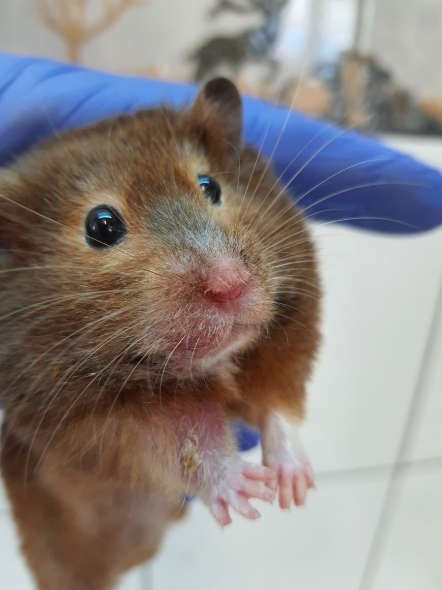 Травма правой лапы у хомяка. Сильный отек. Хромота постоянная.Прогноз осторожный. Очень злой (не шутка)!