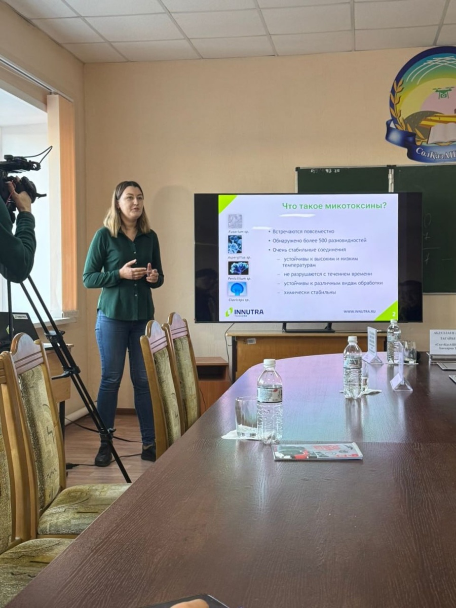 На прошлой неделе состоялся профессиональный диалог в сфере кормопроизводства. Технический специалист по КРС Анастасия Стрельникова представила авторский доклад на семинаре «Интеграция агрономических и зоотехнических аспектов в системе кормопроизводства». Мероприятие собрало экспертов из стран СНГ и будущих специалистов — студентов выпускных курсов ведущего университета Петропавловска. Организатором выступил Северо Казахстанский НИИ сельского хозяйства при поддержке официального дистрибьютора ИННУТРА в Казахстане компании «Лидер Агро». В центре обсуждения — ключевые вызовы отрасли: ▫️современные подходы к заготовке и хранению силоса и сенажа; ▫️угроза микотоксинов и эффективные методы борьбы с ними (подробный разбор от Анастасии Стрельниковой). Благодарим организаторов за возможность быть частью этого важного диалога! Уже ждём новых встреч и обмена опытом 🤝