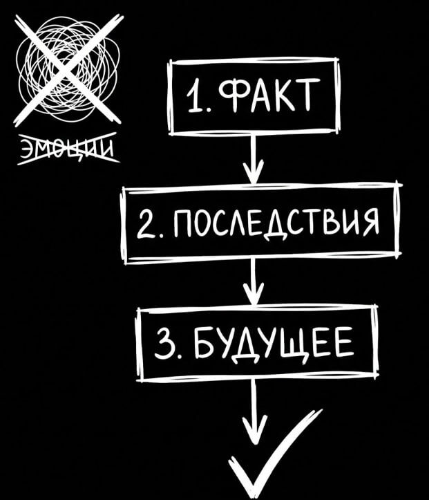 Разбор ошибки легко превращается в эмоциональную свалку. Особенно когда ты устал и тебя подвели в важный момент. Я держусь за простую формулу. 1. Факт Только конкретика, без оценок. Не "ты безответственный", а: "Мы договаривались, что отчёт будет в 18:00, а по факту ты отправил его в 22:30". 2. Последствия Показываю, к чему это привело. "Из-за этого команда не успела подготовиться к завтрашней встрече, часть задач пришлось переносить". 3. Будущее Договариваемся, как делаем дальше. "Давай так: если понимаешь, что не успеваешь, ты до 15:00 пишешь об этом, и мы вместе переупаковываем задачи". Когда результат хороший, структура та же: Факт: "Ты сделал презентацию в таком формате", Последствия: "клиент быстро понял суть, мы проскочили сложный блок", Будущее: "давай возьмём этот формат как базовый шаблон". Главное - говорить в моменте, а не копить "чёрную папку" до годового ревью. Итого получаем обратную связь без крика: факт - последствия - будущее🫡 Далее расскажу как понять, чт