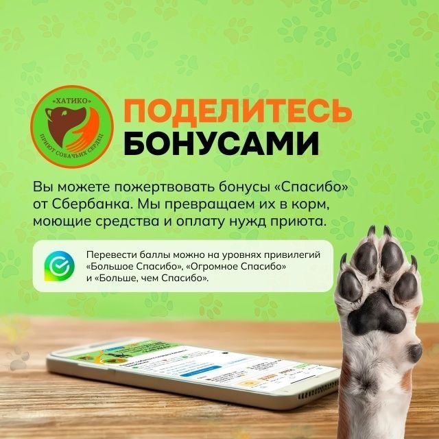 Друзья! Вы можете пожертвовать свои бонусы "спасибо" от Сбербанка. Мы регулярно на бонусы покупаем моющие средства, корма, консервы для наших подопечных. Возвращаем платежи за вывоз мусора. Перевод бонусов в рамках программы «Спасибо» от Сбербанка возможен на уровнях привилегий «Большое Спасибо», «Огромное Спасибо» и «Больше, чем Спасибо». В противном случае перевести бонусные баллы не получится. Чтобы подарить бонусы необходимо следовать инструкции: ⏩Заходим в мобильное приложение Сбербанка. Нажимаем на раздел "Все сервисы", выбираем СберСпасибо. Откроется экран с балансом Ваших бонусов. Нажимаете " Перевод бонусов ".Вбиваете наш номер телефона 8-951-479-75-89, количество бонусов, которые хотите перевести и кнопку " Списать " Готово👌 Банк установил единый «курс» перевода 1 бонус = 0,85 руб. Другими словами, отправленные 1000 бонусов «Спасибо» превратятся в 850 рублей. Проверьте баланс своих бонусов. Многие даже не знают об их существовании🙄 А нам они очень пригодятся✌ 8-951-479-75-8