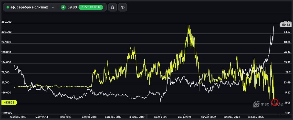 🇷🇺 Физики продолжают рекордными темпами шортить фьючерс на серебро на Мосбирже — данные MSCinsider