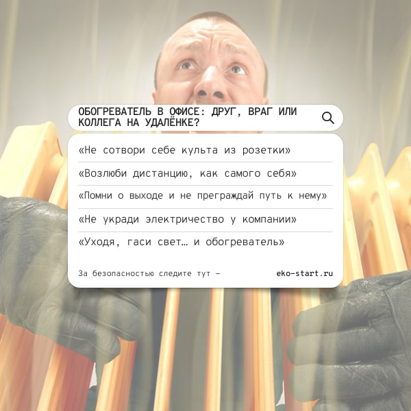 Пришла зима, а с ней и вечный офисный спор: «Кто-то опять окно открыл!» и священный ритуал включения обогревателя. Но прежде чем устраивать «сауну» у своего стола, давайте вспомним — этот маленький теплый друг может устроить большой горячий беспорядок. 😉 Новые правила безопасности — не чтобы испортить нам жизнь, а чтобы она не превратилась в триллер «Побег из горящего офиса». 📜 Новый офисный кодекс: 5 заповедей владельца обогревателя 1. «Не сотвори себе культа из розетки». ❌Втыкать обогреватель в тройник вместе с чайником, принтером и зарядкой для телефона. Это прямой путь к потемневшим стенам и всеобщему внеплановому отпуску. ✅Использовать отдельную розетку. Идеально — ближайшую к своему столу, чтобы не тянуть провод через весь офис, как пуповину. 2. «Возлюби дистанцию, как самого себя». ❌Направлять тепловую пушку на соседа (даже если он очень холодный человек), шторы, стопку бумаг или любимый фикус. ✅Держать минимум 1 метр от всего, что может загореться, вспотеть или завянуть. Ваша