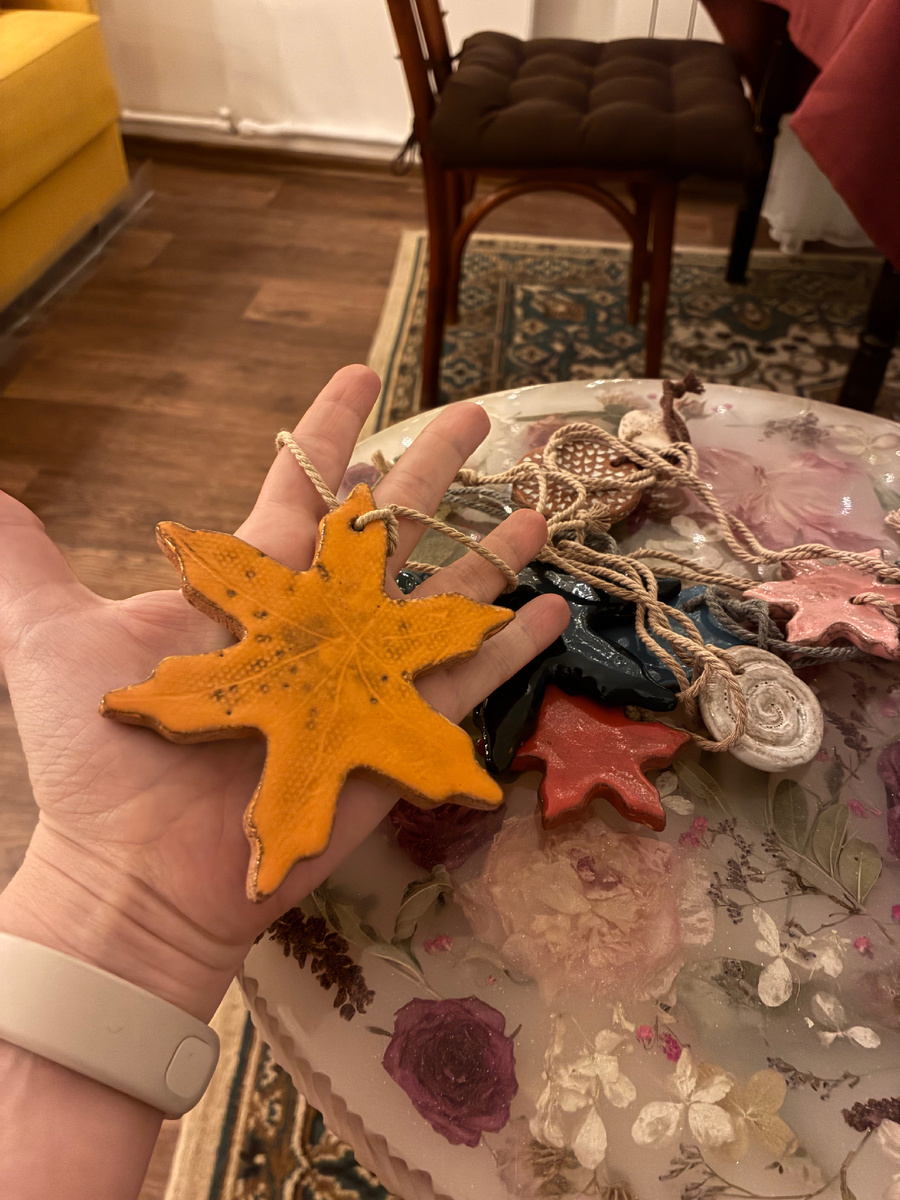 Этим августом я привезла с Ольхона керамические подвесы. Разные кружочки, звёздочки на нитях. Можно применить как ёлочные игрушки. Можно как-то ещё. Работы детей, которые занимаются керамикой на кружке. Налепили всякого, чтобы продать на ярмарке и собрать денег на новую печь для обжига и расходники. Цена свободная. Сколько не жалко. Мне жалко не было. И я взяла много штучек, привезла домой. Подумала и решила оформить свой большой проём между кухней и гостиной. Будет красиво. А ещё у меня есть красивущие вороньи перья. Я их подобрала в своих родных степях пару лет назад. Знаю, что нужны, а зачем - не знаю.