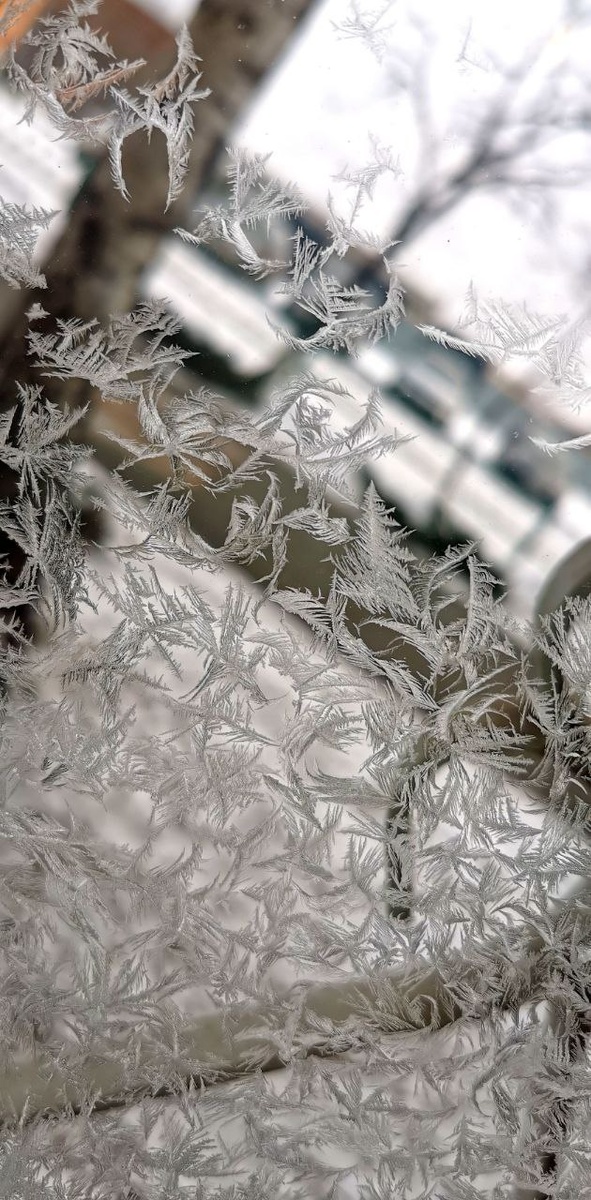 Мороз – удивительный художник! Его «мастерские» открываются на наших окнах с первыми заморозками Причудливые узоры рождаются, когда водяной пар из воздуха, минуя жидкую фазу, сразу превращается в твёрдые кристаллы на стекле. Молекулам воды проще зацепиться и начать кристаллизоваться на мельчайших царапинках и пылинках на стекле, чем на идеально гладкой поверхности. Так появляются эти мимолётные шедевры: нежные перья, звёздные россыпи, хвоинки деревьев и даже летающие семена одуванчика. Каждый узор неповторим, ведь он зависит от тайной игры температуры, влажности и микроскопических узоров на самом стекле. Мы успели запечатлеть несколько таких картин. Обязательно присмотритесь к своим окнам – ведь эта красота может растаять с первым лучом солнца. МКУ «ЛесПаркХоз»