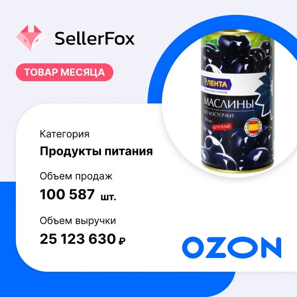 ПП - полезно и питательно. Баночка маслин стала лидером по количеству продаж в категории "Продукты питания" на Ozon. За последний месяц товар приобрели более 100 тысяч раз на общую сумму свыше 25 млн рублей. Растут на Ozon и продажи протеиновых батончиков. На Ozon в январе — сентябре продано в 1,5 раза больше протеиновых батончиков, чем год назад. «Самая впечатляющая динамика» — у протеинового мороженого и протеинового печенья: рост в 10 раз и почти вдвое соответственно. Ozon сообщил, что на 30% расширился ассортимент батончиков и сладостей (прежде всего за счет отечественных производителей). Для сравнения - на Wildberries продажи продуктов с протеином увеличились в январе — ноябре более чем на 40% в деньгах. Wildberries отмечает также рост продаж продуктов с коллагеном — в деньгах на 200%, хотя и в основном за счет низкой базы прошлого года. И здесь тоже лидируют отечественные производители — их продажи почти в 6 раз превышают импорт.