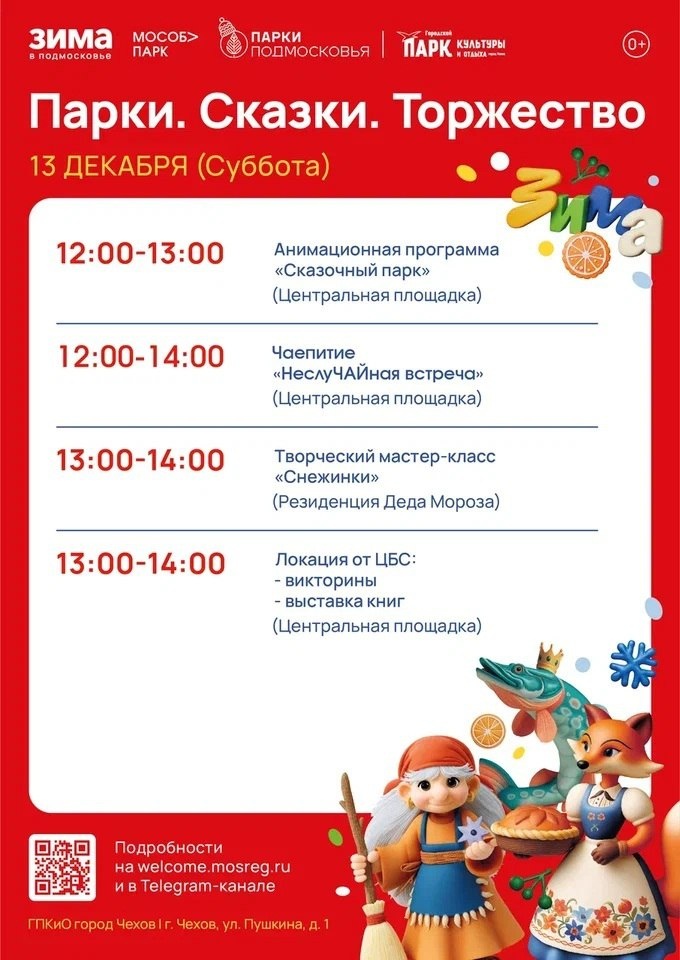 ✨ Фестиваль ПАРКИ. СКАЗКИ. Торжество ❄️ С 12:00 до 14:00 На центральной площадке 👉12:00 - 13:00 Анимационная программа 👉12:00 - 14:00 Чаепитие «НеслуЧАЙная встреча» 👉13:00 - 14:00 Викторины и выставка книг ❄️13:00 - 14:00 Творческий мастер-класс «Снежинки» (Резиденция Деда Мороза) 🚫 Возраст: 0+ 📆 13.12.2025 🏢 Городской парк культуры и отдыха 📍 г. Чехов, ул. Пушкина, д.1 🪙 Вход свободный❗️ ⭐Поддержать канал голосом ✅ Мероприятия Чехов https://dzen.ru/id/66cc4b48e9ef144699238a51 http://vk.com/chekhov_events http://dzen.ru/chekhov_events
