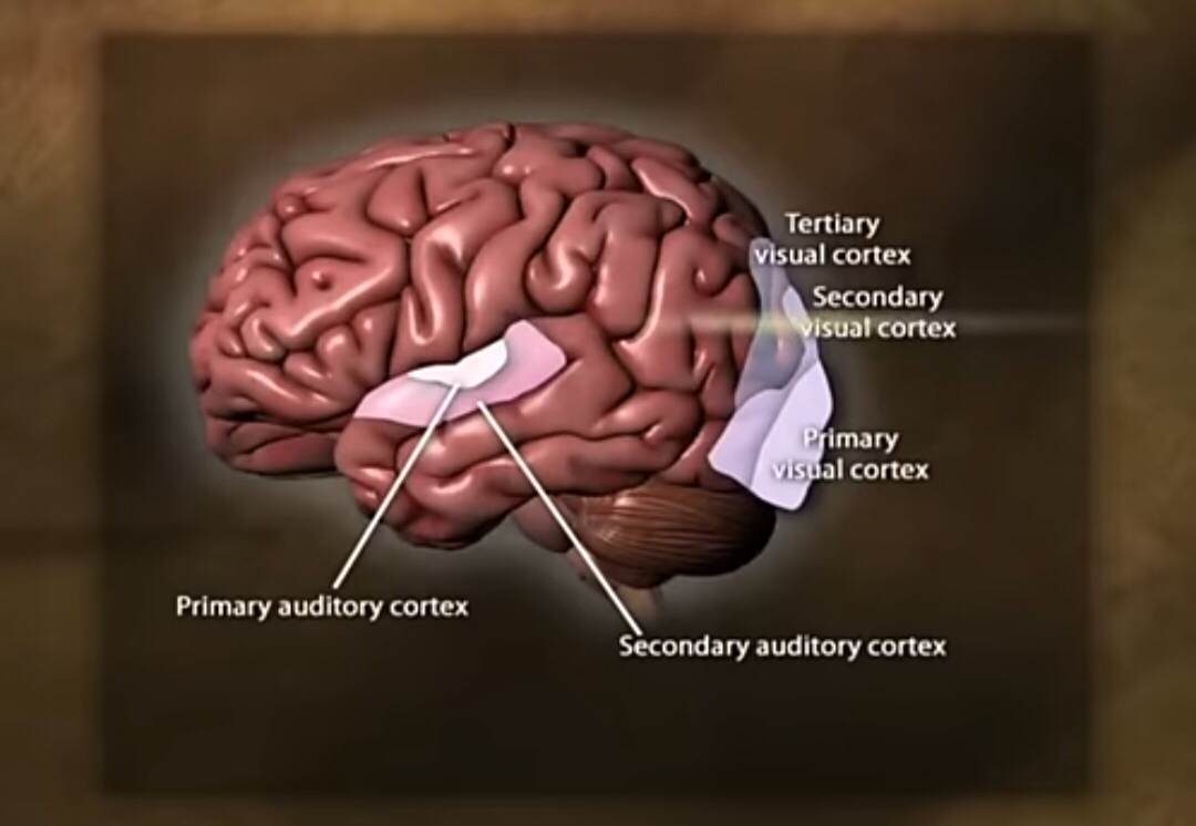 Primary - прАймэри - начальный, первичный Secondary - сЭкондэри - вторичный Tertiary - тЁрщиэри - третичный, высшее Есть три коры в мозге визуальные: 1) Первичная визуальная кора 2) Вторичная визуальная кора 3) Третичная визуальная кора И две аудиальные (слуховые) коры: 1) Первичная аудиальная кора 2) Вторичная аудиальная кора Во время быстрой фазы сна - одни участки мозга затихают, а другие наоборот активизируются И одна из активизирующихся областей - вторичная сэнсорная кора То есть когда информация поступает в мозг - она вначале попадает в первичную визуальную и аудиальную коры, а потом передаётся дальше: По визуальным корам - вначале поступает в первичную, потом проходит во вторичную, а затем обрабатывается в третичной По аудиальным - вначале в первичную, а потом передаётся во вторичную Обычно визуальные коры работают вместе с аудиальными Во время быстрого сна - первичная сэнсорная кора замирает, а вторичная и третичная активируются как сумасшедшие И эти участки мозга ведут
