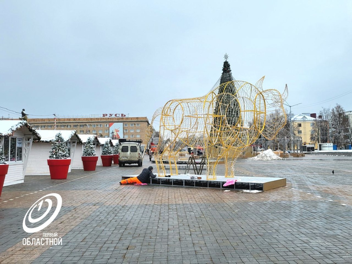 На площади Ленина в Орле идёт установка светодиодных зубров