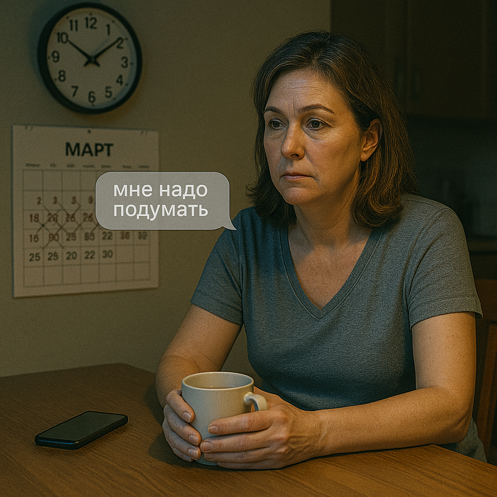 Он просто выбирает самый комфортный для себя режим: пусть мир подождёт, пока я определюсь. Вопрос: а почему в этом мире единственная, кто реально ждёт — ты? Чем опасно для тебя это ожидание Пока он «думает», с тобой происходят очень конкретные вещи: время идёт, а ты не строишь никакие планы; энергия уходит на анализ его слов и действий; ты боишься делать