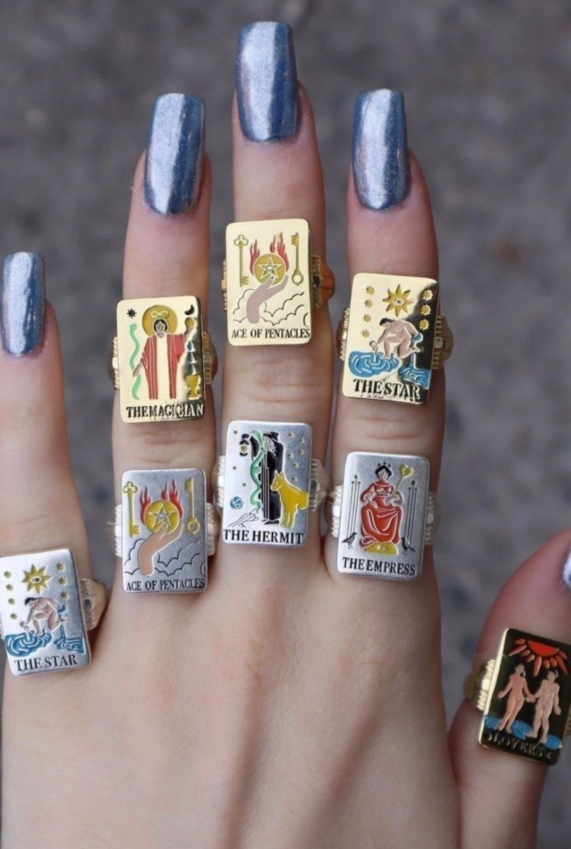 Недавно в сети увидела такое фото Необычно, захотелось сразу найти Но именно таких колец не нашла Интернет конечно много предлагает вариантов на эту тематику, но в основном однотипные или просто кольца с картами, не имеющие отношения к Таро Если кто действительно знает или видел, поделитесь ссылкой 😉