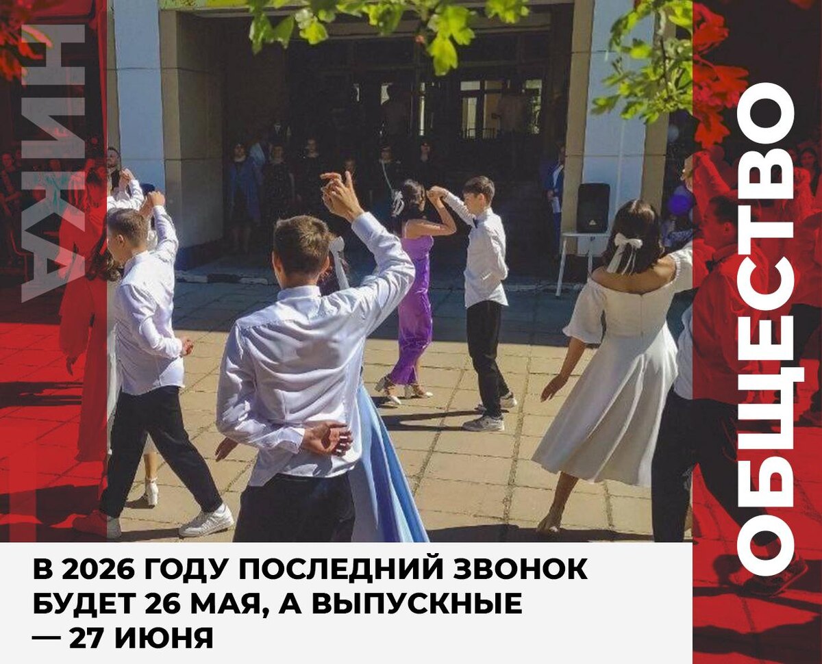 🔔 В 2026 году последний звонок будет 26 мая, а выпускные — 27 июня