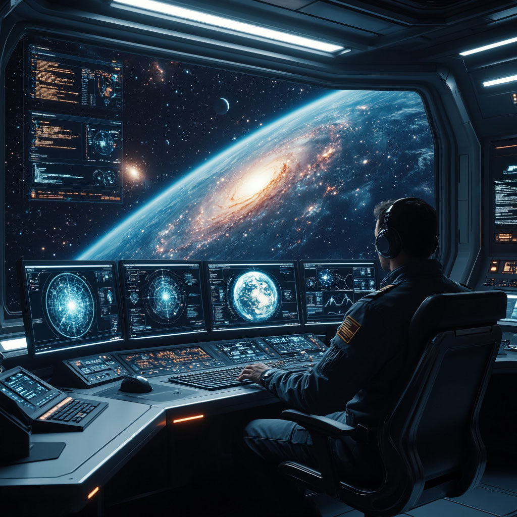 Я отдал честь и вышел в коридор. Коридор был залит холодным светом, пол блестел от недавней уборки. За огромными иллюминаторами, создававшими ощущение простора, медленно проплывала планета, а корабли, словно игрушечные, маневрировали у стыковочных портов. Вдоль иллюминаторов стояли столы с диспетчерами. Я прошёл мимо — кто-то кивнул, кто-то даже не заметил. Всё было новым, но уже чувствовалось: здесь каждый знает своё место, жизнь на базе кипела.