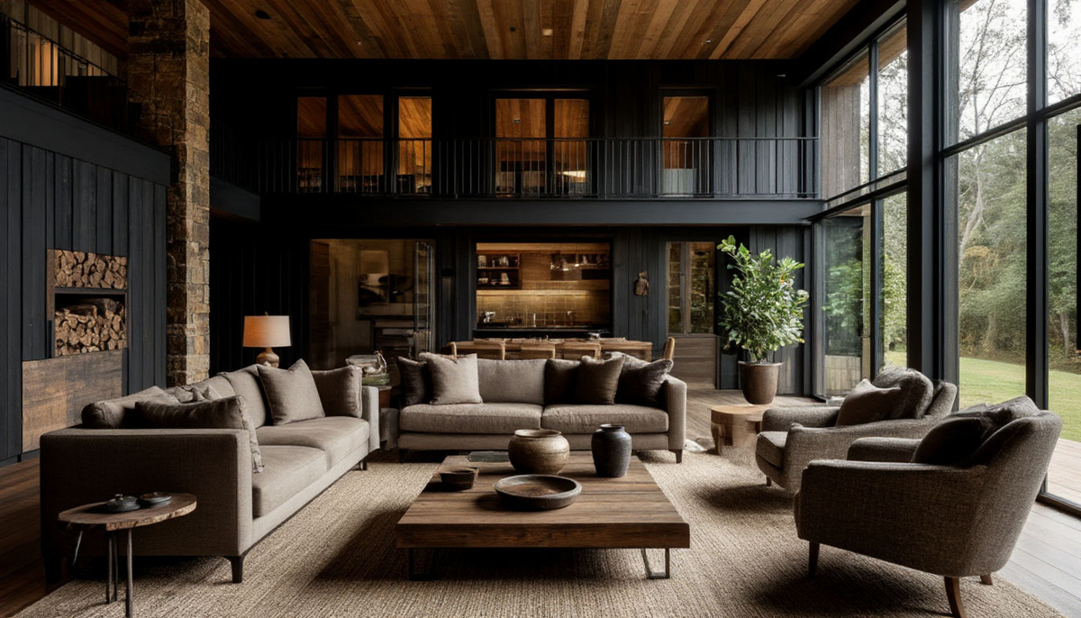 Темные стены в доме из бруса — это не про мрачность, а про статус, глубину и продуманный дизайн. Глубокий графит, индиго, антрацит, шоколадный или почти черный оттенок могут превратить обычный загородный дом в современное, эффектное пространство, где фактура дерева раскрывается особенно выразительно.