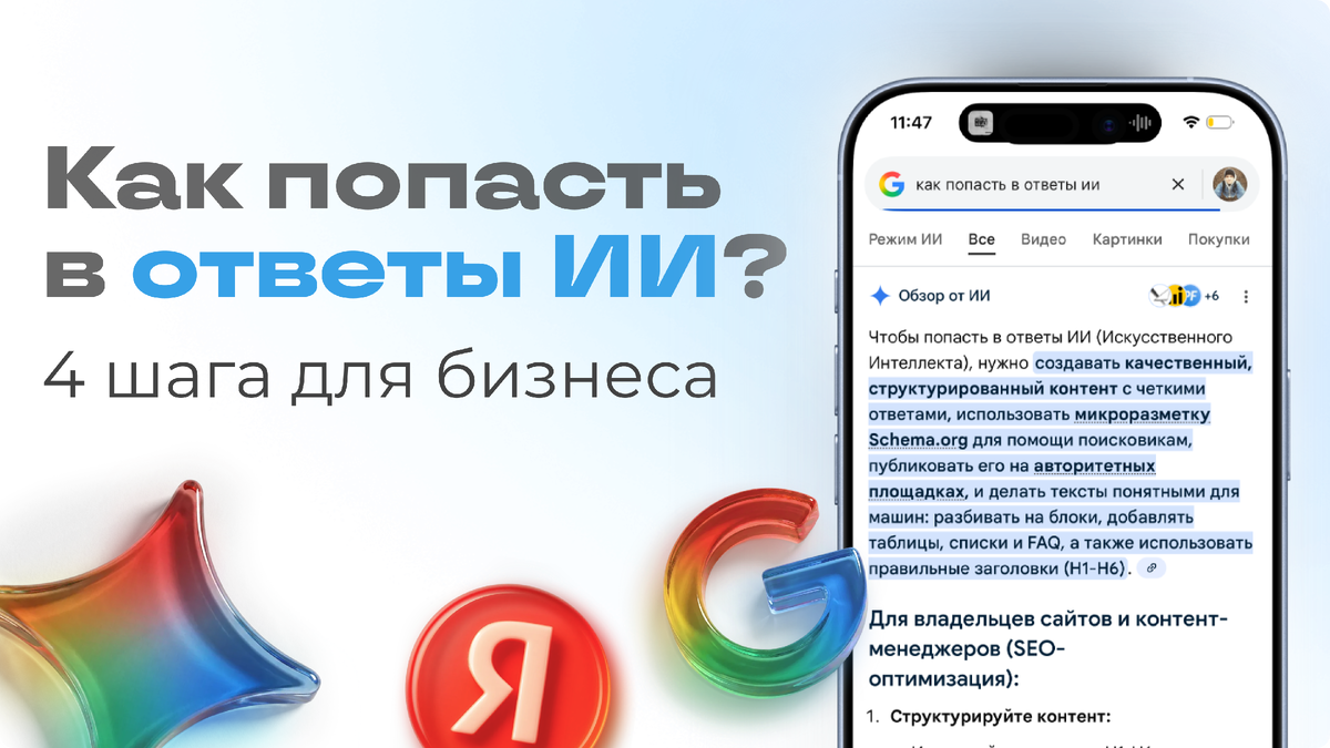 В этой статье я собрал практическую четырёхшаговую систему, которую использую в работе. Она показывает, как адаптироваться к новой поисковой реальности и обеспечить присутствие бренда не только в классической выдаче, но и в нейроответах.