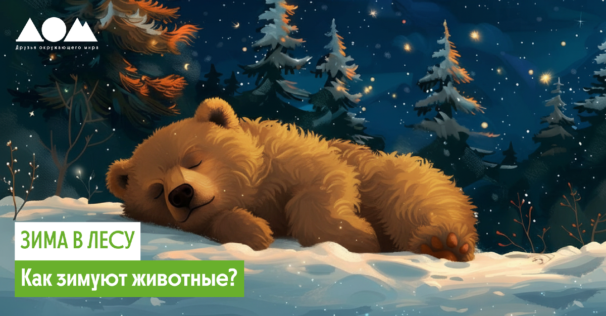 Почти пролетела половина декабря. В Москве, например, снег выпал только сегодня! А в Красноярском крае уже который день температура опускается до -30. А как же в такое время спасаются животные? А те, кто живет в лесу? Сегодня мы расскажем вам о том, как животные переживают зиму. Это довольно тяжёлое время, ведь сильные морозы и нелёгкие условия добычи пищи делают жизнь в дикой природе ещё сложнее. Кто-то впадает в спячку, а кто-то продолжает охотиться и искать пропитание… Начнём с животных, которые впадают в спячку. Главное условие для этого — защищённая берлога и большое количество подкожного жира. Медведи начинают готовить себе берлогу с наступлением холодов. Они устраивают её под корнем упавшего дерева. Интересно, что самки медведя рожают медвежат в январе-феврале и кормят детенышей молоком до весны, не выходя из берлоги. Еноты тоже впадают в спячку. Их температура тела, как и у медведей, снижается из-за замедления протекания жизненных процессов. В норках всю зиму спят многие грыз