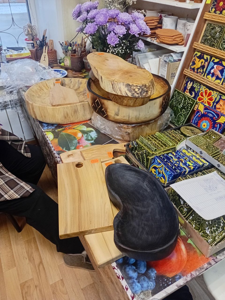 Съездил в Переславль-Залесский. Отдал свои фруктовницы и разделочные доски в магазин подарков рядом с музеем Утюга. Как говорят политики,конструктивно побеседовали с совладелицей магазина,с заделом на будущее.