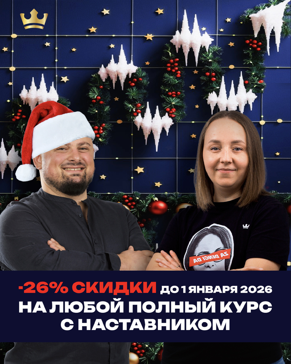 Новогодняя акция от Кинглаб! Если давно хотел серьезно влиться в трейдинг — вот тот самый момент, когда откладывать уже нет смысла. Полный курс Кинглаб — это не просто набор видео уроков. Ты проходишь обучение вместе с наставником и оттачиваешь навыки на практике, используя для торговли реальные деньги, и никаких демо-счетов. ✔️Почему Полный курс так ценят? Потому что он построен вокруг практики. Никакой теории ради теории — только то, что действительно нужно трейдеру: — 6 месяцев практики под сопровождением наставника