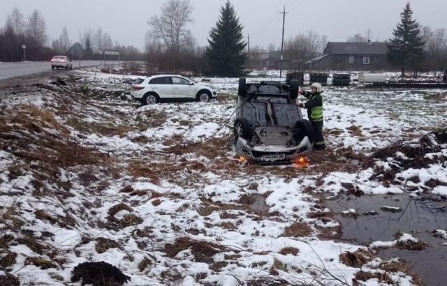 Автоледи на иномарке уходила от столкновения со встречным обгонщиком: обе машины улетели в кювет в Олонецком районе