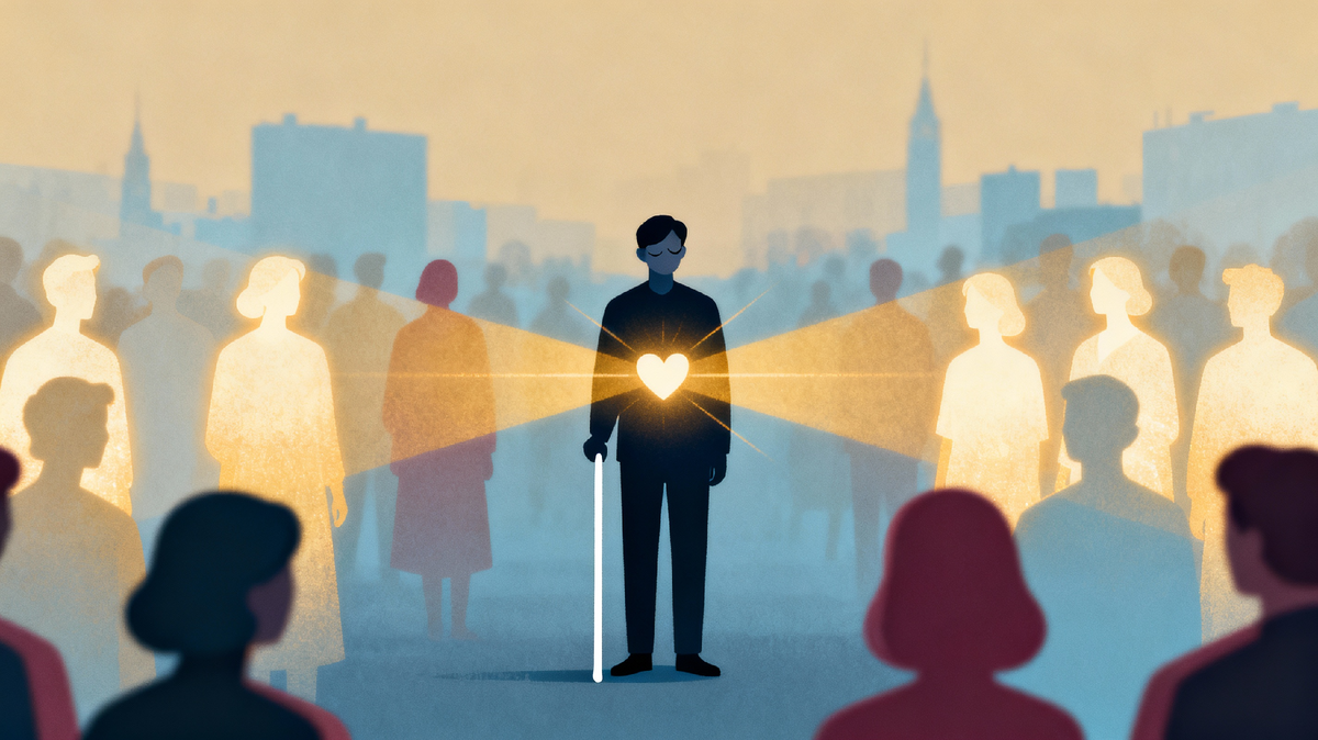 В итоге видеть сердцем, как я сам себе это объясняю, — это умение, не полагаясь на картинку, ощущать эмоцию другого, видеть его душу, различать доброе и злое, иметь любящее сердце не за что-то, а просто так, каким, в общем-то, и должна быть любовь. Уметь сопереживать, сочувствовать. То есть моё сердце смотрит на внутренний мир человека, что, на мой взгляд, гораздо ценнее, чем глазки, потому как иметь зрение физическое, но черствое и каменное сердце по отношению к другим — гораздо опаснее для окружающих и самого себя. Духовная слепота — вещь опасная.