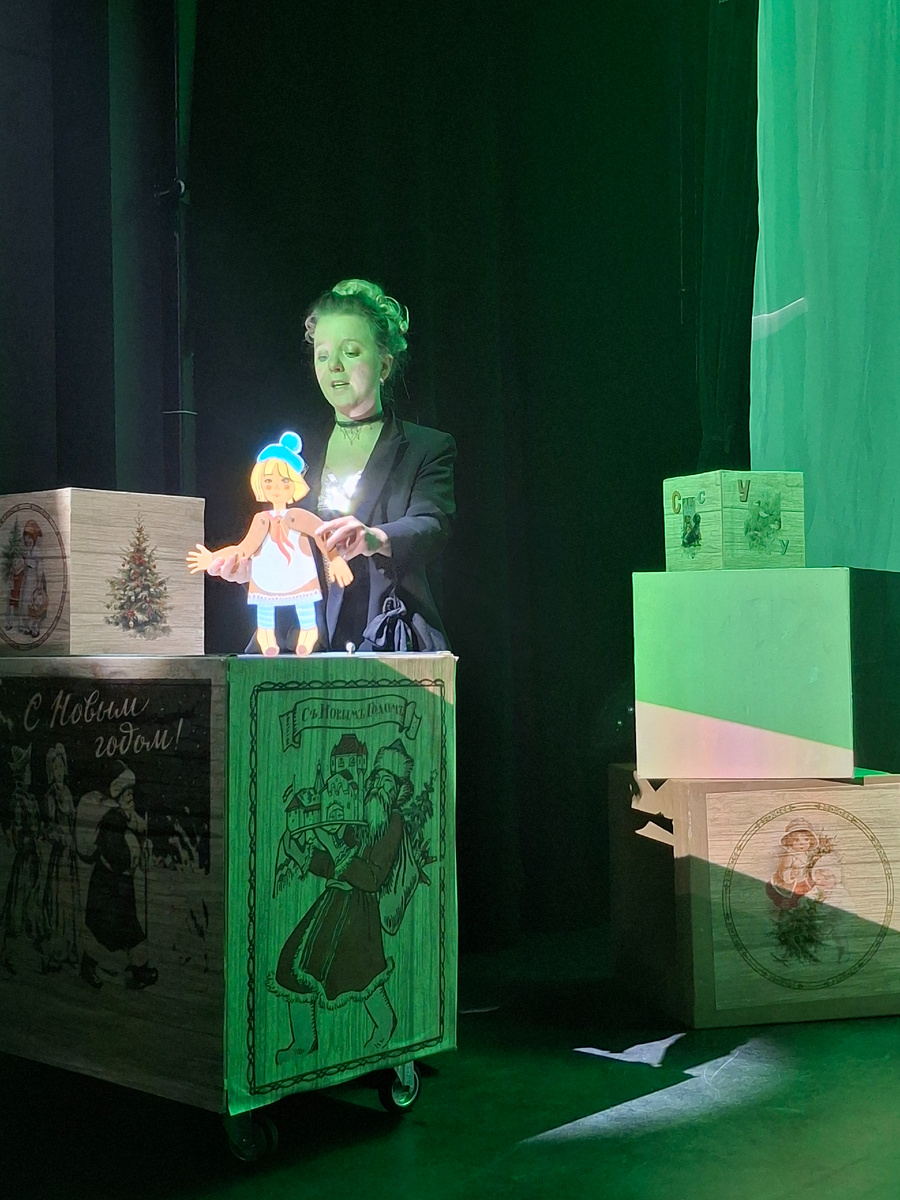 Через волшебный портал мы зашли в зал и попали на необычную экскурсию. Увидели машину времени, но оказалось, она вышла из строя и нужны недостающие артефакты, чтобы возобновить ее работоспособность. На поиски артефактов мы отправились в три разных эпохи: 🎄Эпоха СССР и Москва 30-х Наше путешествие во времени началось с 1930-х годов, когда строилось метро и станция Смоленская. Переместились в далекий СССР и помогли найти прошлогодние ёлочные игрушки, бережно завернутые в газеты. В газете "Правда" от 1937г прочитали заметку о коллективных ёлках в школах, домах творчества и культуры. 🎄Эпоха 19 века. В 19 веке мы попали на праздничный бал, где все желающие смогли научиться вальсировать. Посмотрели теневой театр с танцующими парами. Насладились прекрасным вальсом кавалера в смокинге и дамы в нарядном платье. В этой эпохе мы руками строили трамвайные рельсы, предъявляли билетики кондуктору и катались на трамвае, подпрыгивая на кочках. 🎄Эпоха 20 века. Мы скакали на тройке вороных,