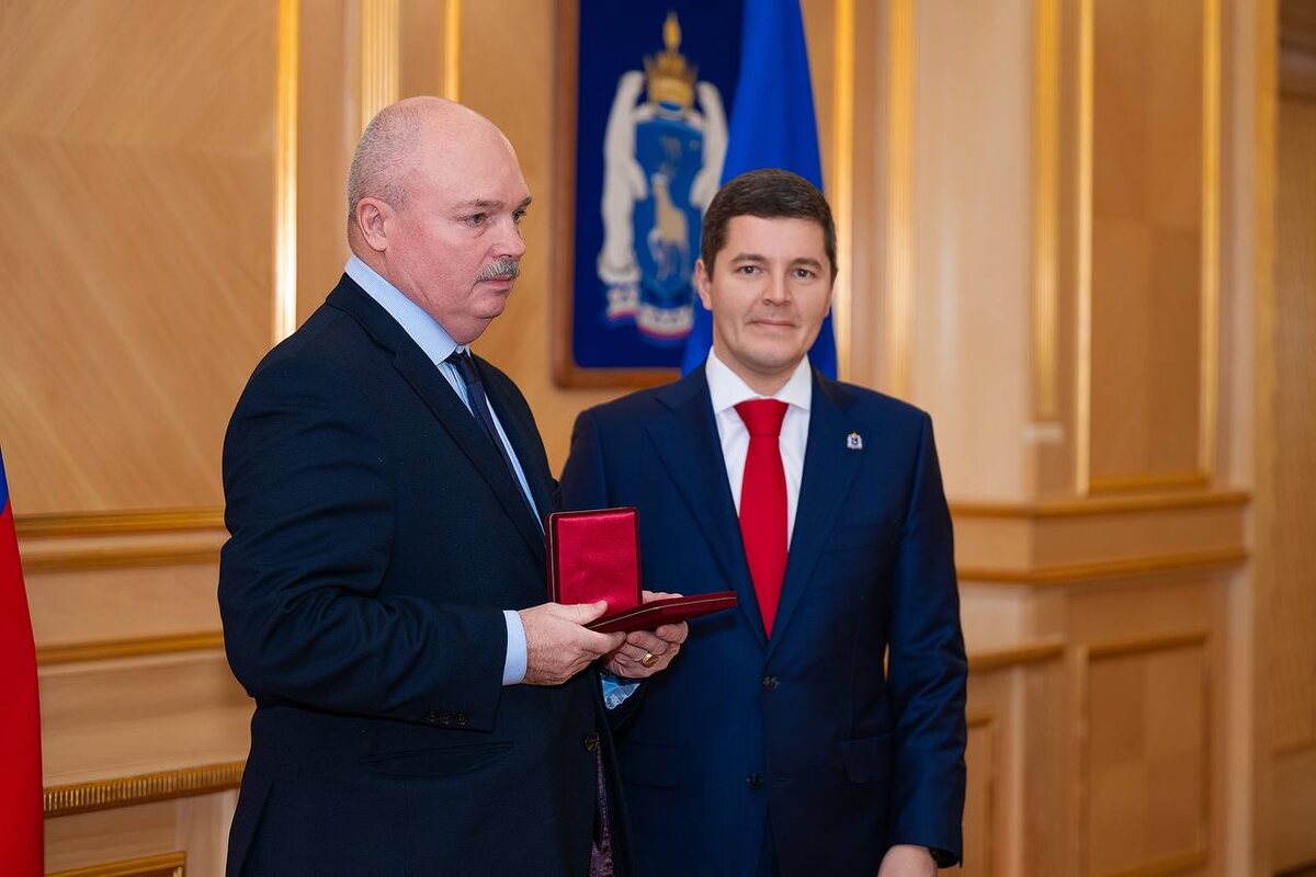 Губернатор ЯНАО вручил государственную награду оператору по исследованию скважин Западно-Таркосалинского газового промысла Восточно-Сибирского нефтегазопромыслового управления Сергею Сиротину. Торжественная церемония прошла сегодня, 10 декабря, в Салехарде в рамках празднования 95-летия округа. Почетное звание присвоено за многолетний добросовестный труд и выдающийся личный вклад в освоение и ввод в промышленную эксплуатацию газовых месторождений. Сергей Сиротин работает в «Газпром добыча Ноябрьск» с 1993-го года. Он является высококвалифицированным специалистом в области исследования скважин. Его профессионализм неоднократно обеспечивал успешное решение сложных производственных задач, включая ввод в эксплуатацию газовых скважин и их технологическое перевооружение. За трудовые достижения Сергей Сиротин ранее был отмечен ведомственными и региональными наградами. Он имеет звание «Заслуженный работник нефтяной и газовой промышленности ЯНАО», а также награжден Почетной грамотой Министерс